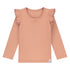 De ruffle longsleeve perzik is een vrolijk en liefdevol shirtje dat direct een warme uitstraling geeft. De zachte perzikkleur maakt het een echte blikvanger in de garderobe van je kleintje, terwijl de dubbele ruffles op de schouders zorgen voor een speels detail. Het shirtje is gemaakt voor zowel baby’s als peuters en voelt heerlijk zacht aan op het tere huidje.